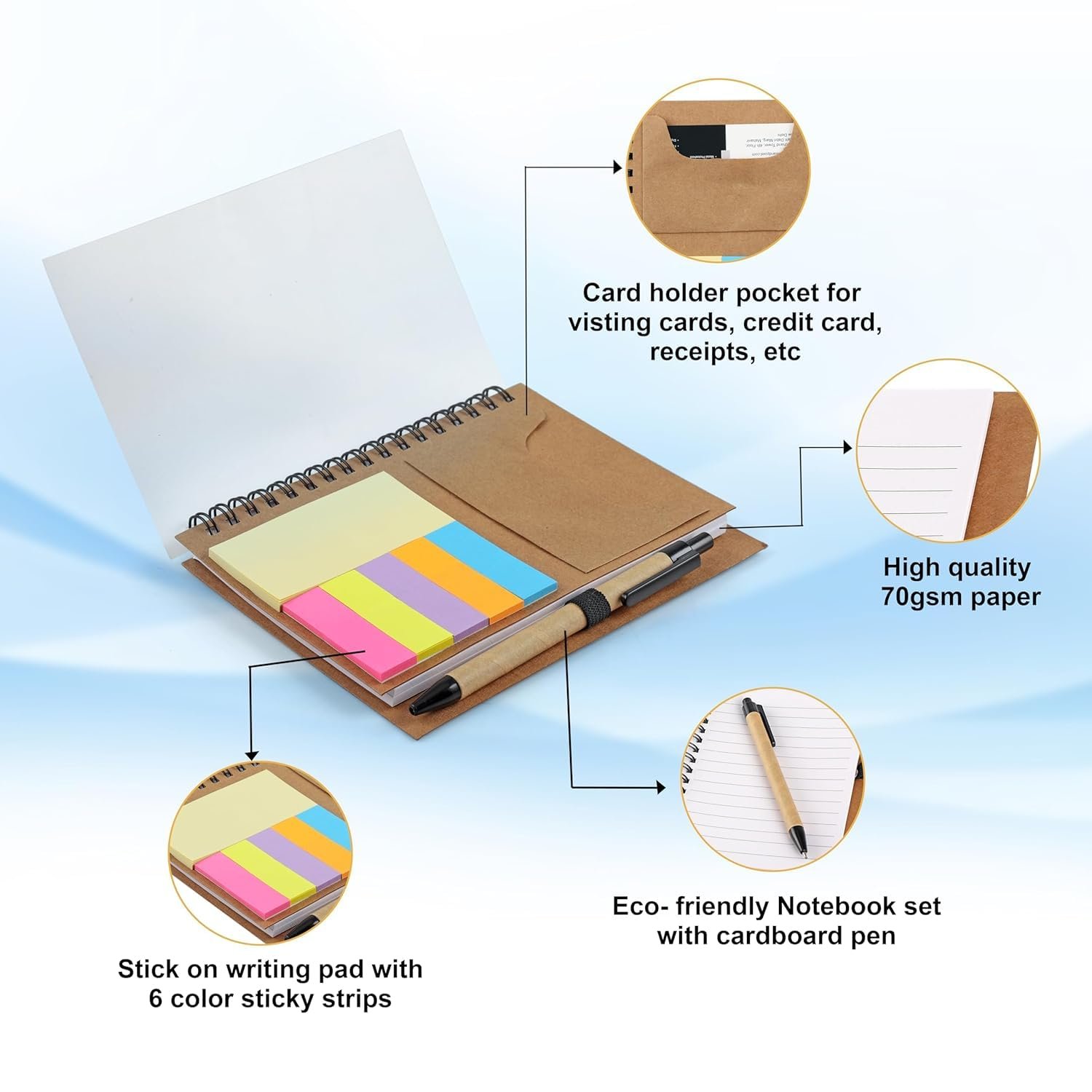 Each item is crafted for regular office or work-from-home use, offering comfort, durability, and a polished look. From sipping your coffee to note-taking and networking – this set keeps it classy.